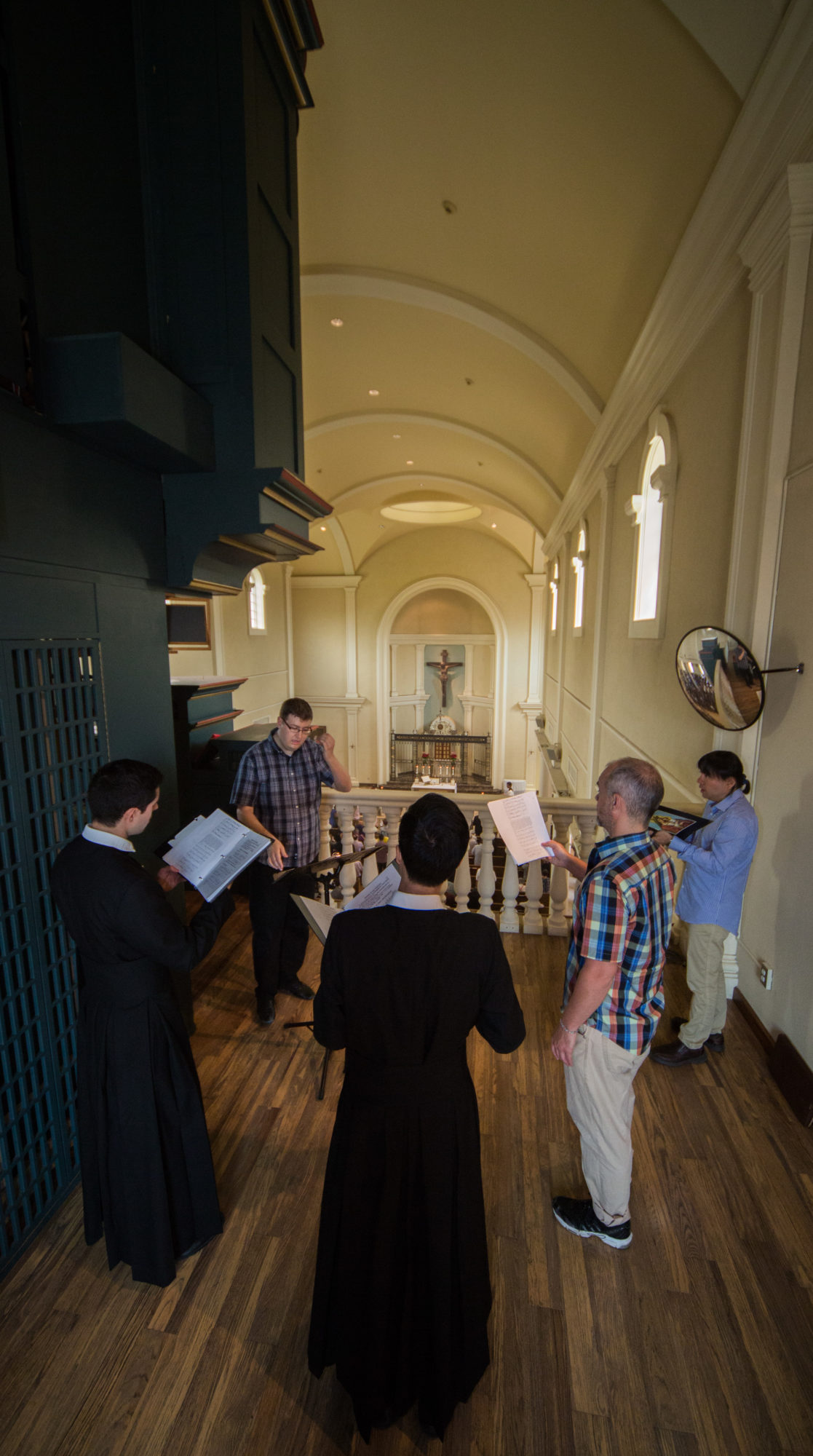 The Schola Cantorum at the Oratory is a male-voice ensemble specializing in Gregorian chant, particularly the melismatic Propers of the Mass. The bulk of its members are drawn from the student body of St Philip’s Seminary, who benefit from the opportunity to gain practical experience in singing chant as well as a deeper knowledge of the history of liturgical music. Our approach to chant is informed by the principles of semiology (the study of the signs in the earliest chant manuscripts, which provide crucial aids to rhythm and musical interpretation). Although the schola focuses primarily on the Gregorian chant repertory, the ensemble also sings later chant repertories, such as the works of St Hildegard of Bingen, and some polyphonic music.